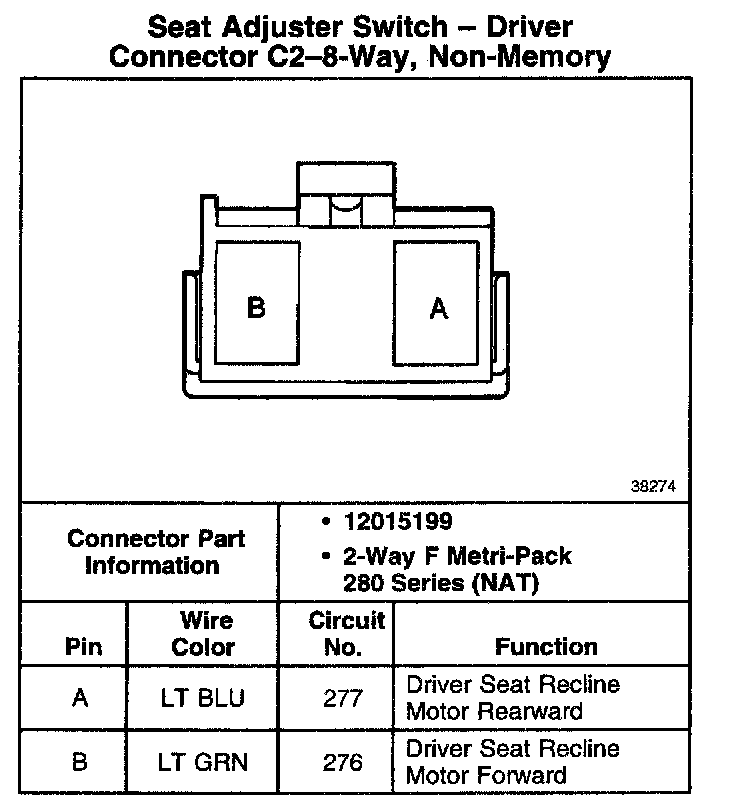 Seat Adjuster Switch - Driver Connector C2-8-Way, Non-Memory: