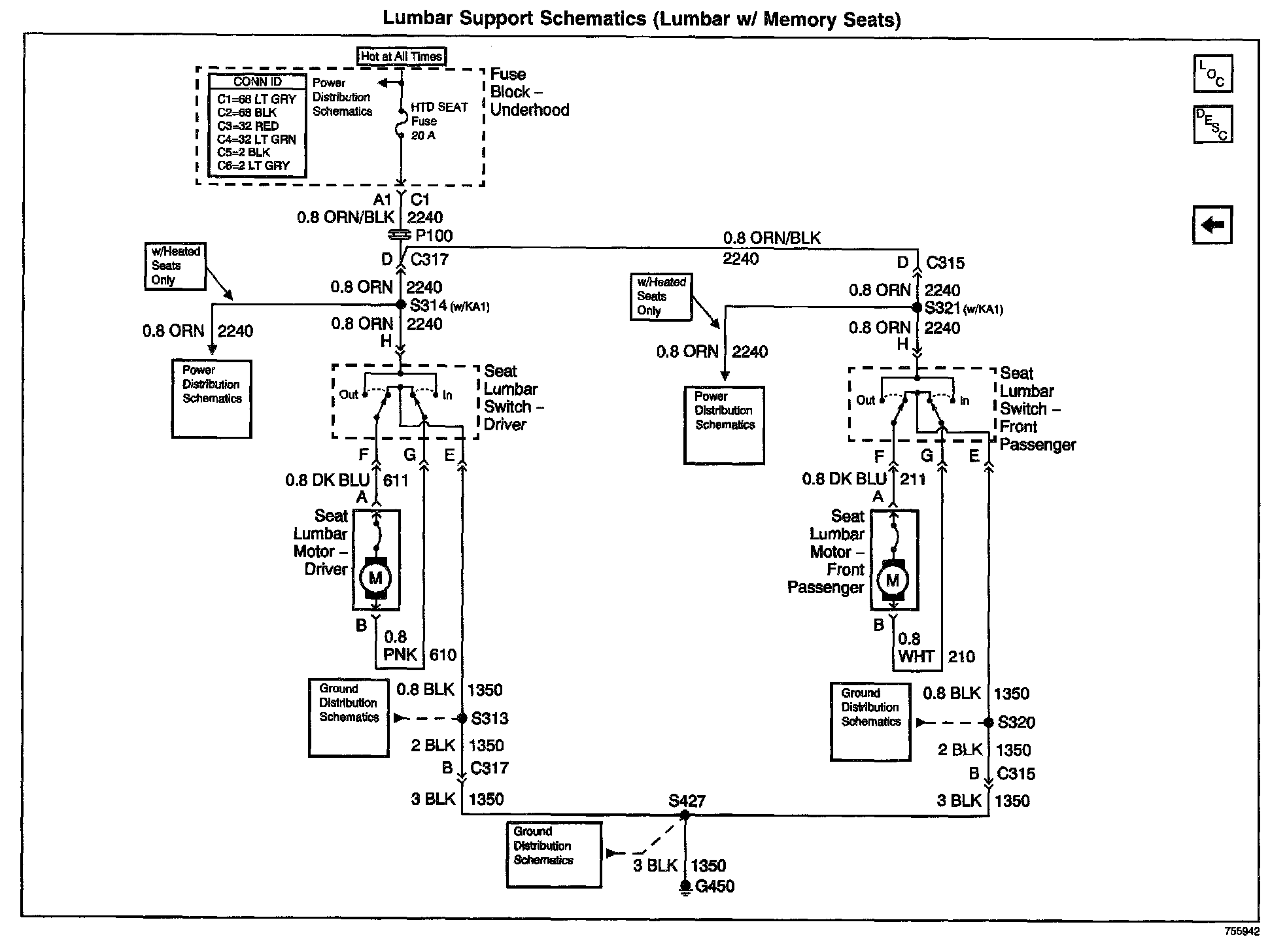 Lumbar Support Schematics: Lumbar W/Memory Seats: