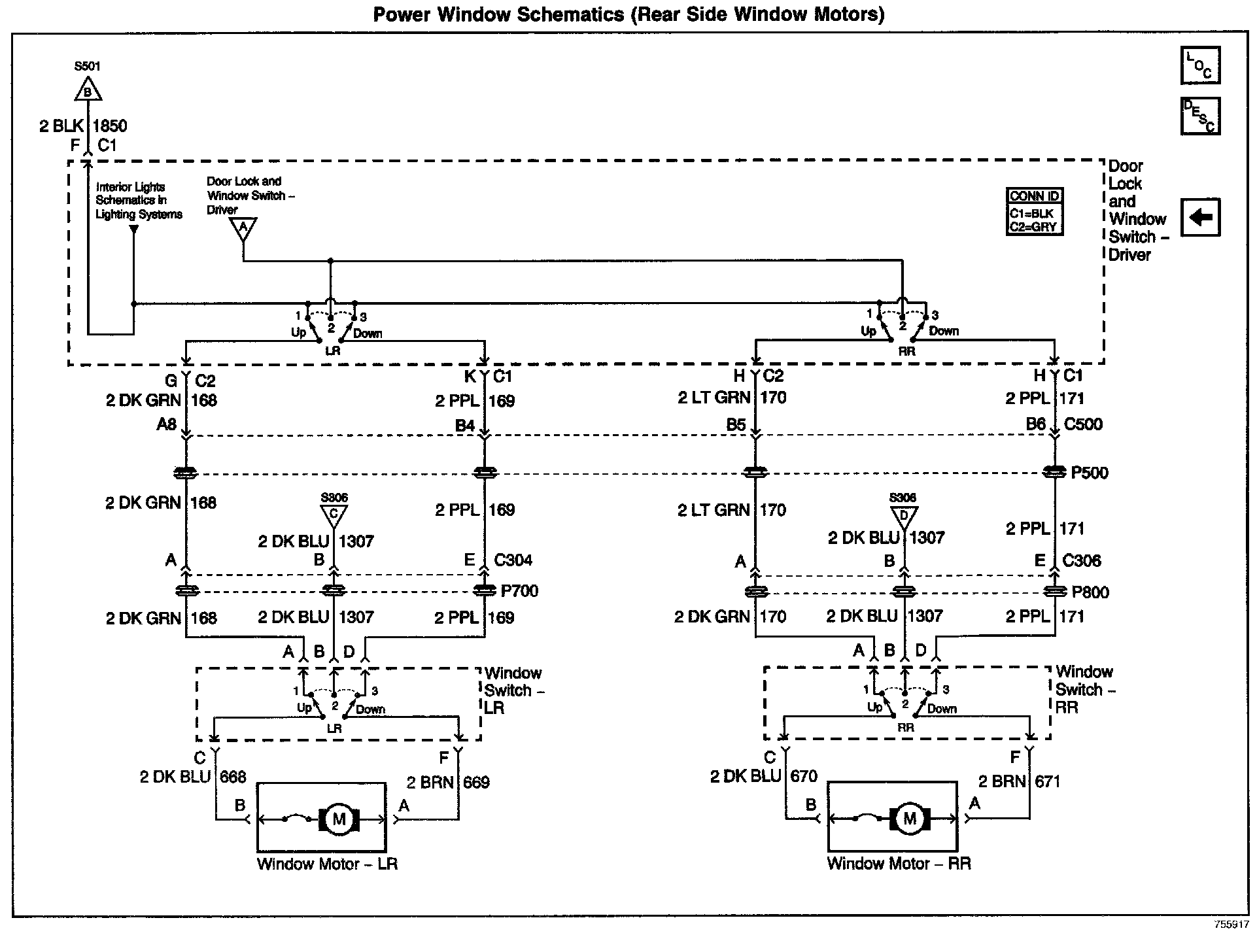 Power Window Schematics: Rear Window Motors: