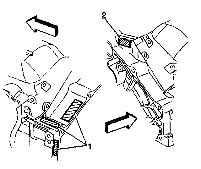 Engine Identification^ The Vehicle Identification Number (VIN) Derivative is located on the left side rear of the engine block (1) or on the right side rear (2) and typically is a nine digit number stamped or laser etched onto the engine at the vehicle assembly plant.