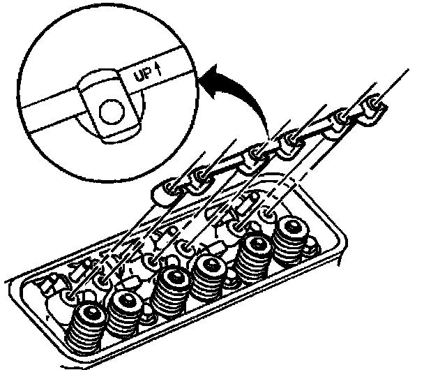 Important: Be sure that the arrow on the valve rocker arm support is in the up position.