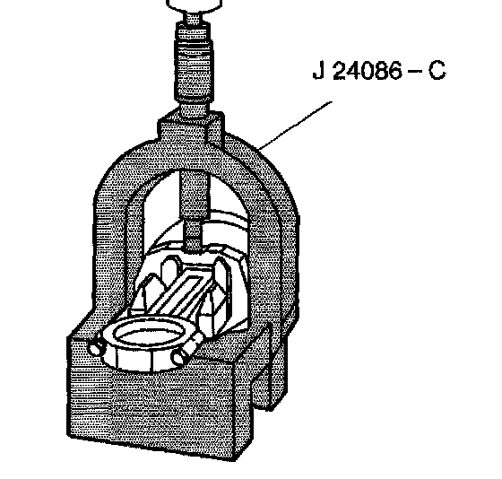 2. Press the piston pin from the connecting rod using the J 24086-C. The piston pin has an interference fit into the connecting rod, and is full floating in the piston.