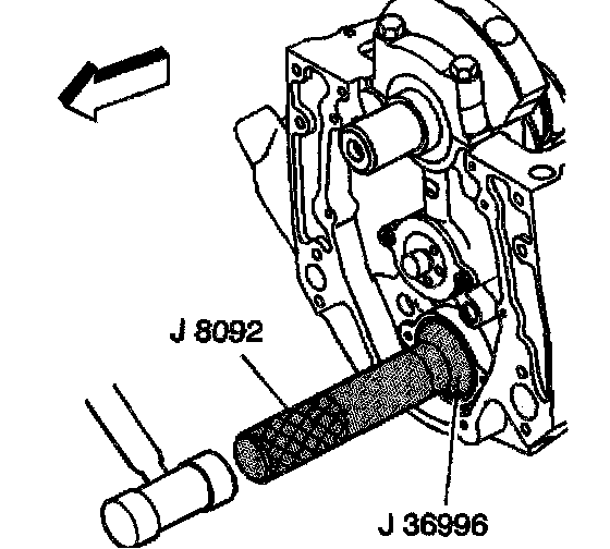 2. Use the J 36996 and the J 8092 in order to install the balance shaft.