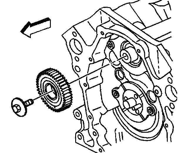 5. If reusing the fastener, apply threadlock GM P/N United States 12345382, GM P/N Canada 10953489, or equivalent, to the threads of the balance shaft driven gear bolt.
