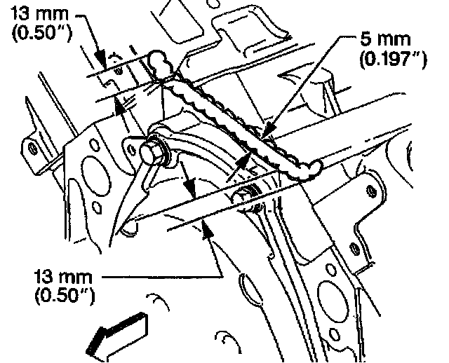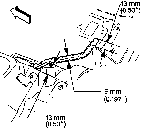 4. Extend the adhesive bead 13 mm (0.50 inch) onto each lower intake manifold gasket.