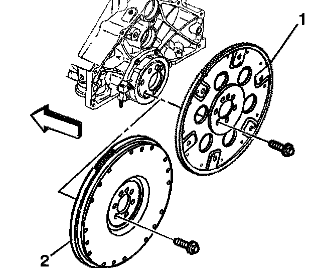 2. Install the engine flywheel (1 or 2) to the crankshaft.