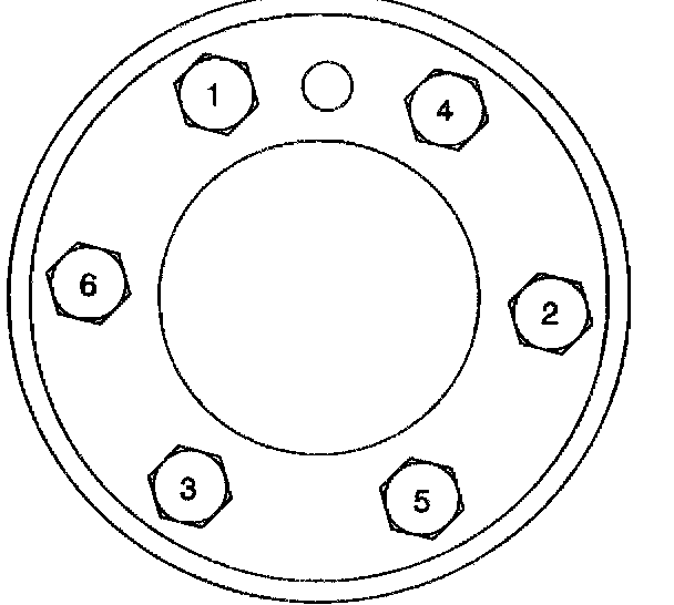 ^ Tighten the engine flywheel bolts in sequence to 100 Nm (74 ft. lbs.).