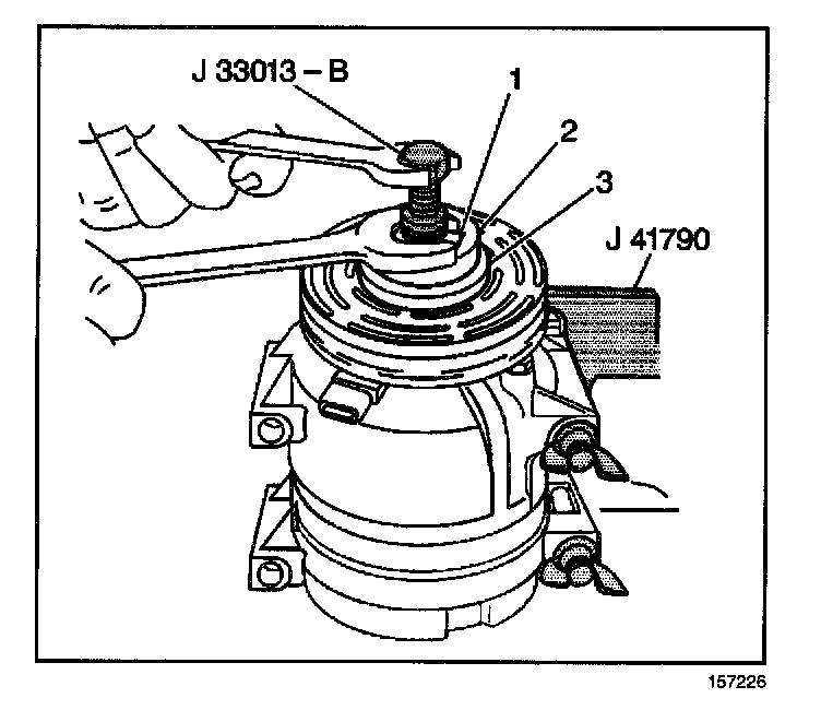 14. Remove the A/C compressor from J 41790.