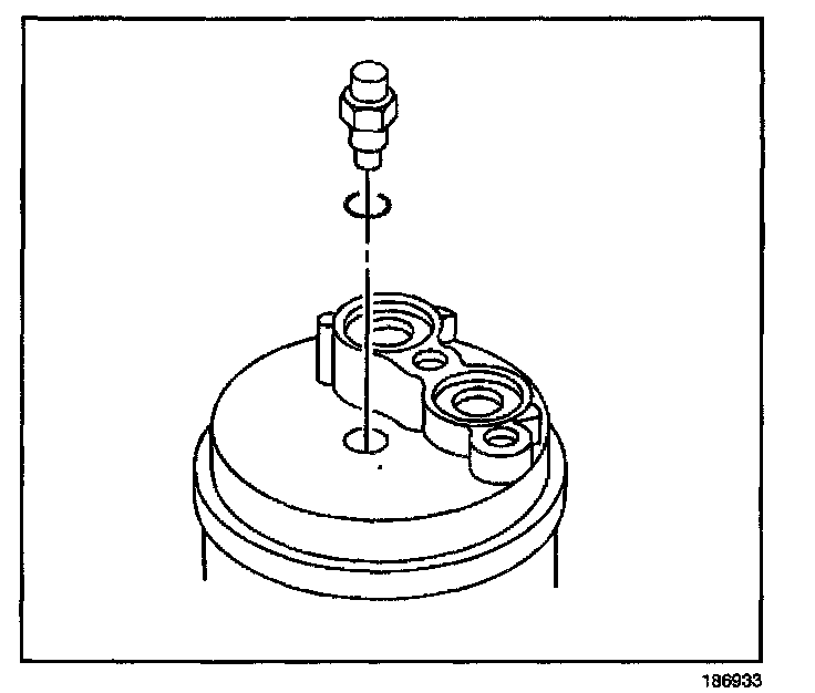 3. Remove the pressure relief valve from the rear head of the A/C compressor.
