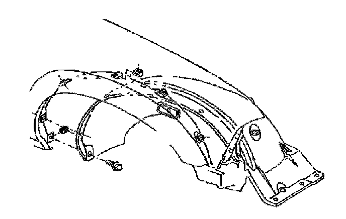 8. On vehicles with A/C only, remove the right wheel house panel. Refer to Wheelhouse Panel Replacement Service and Repair.