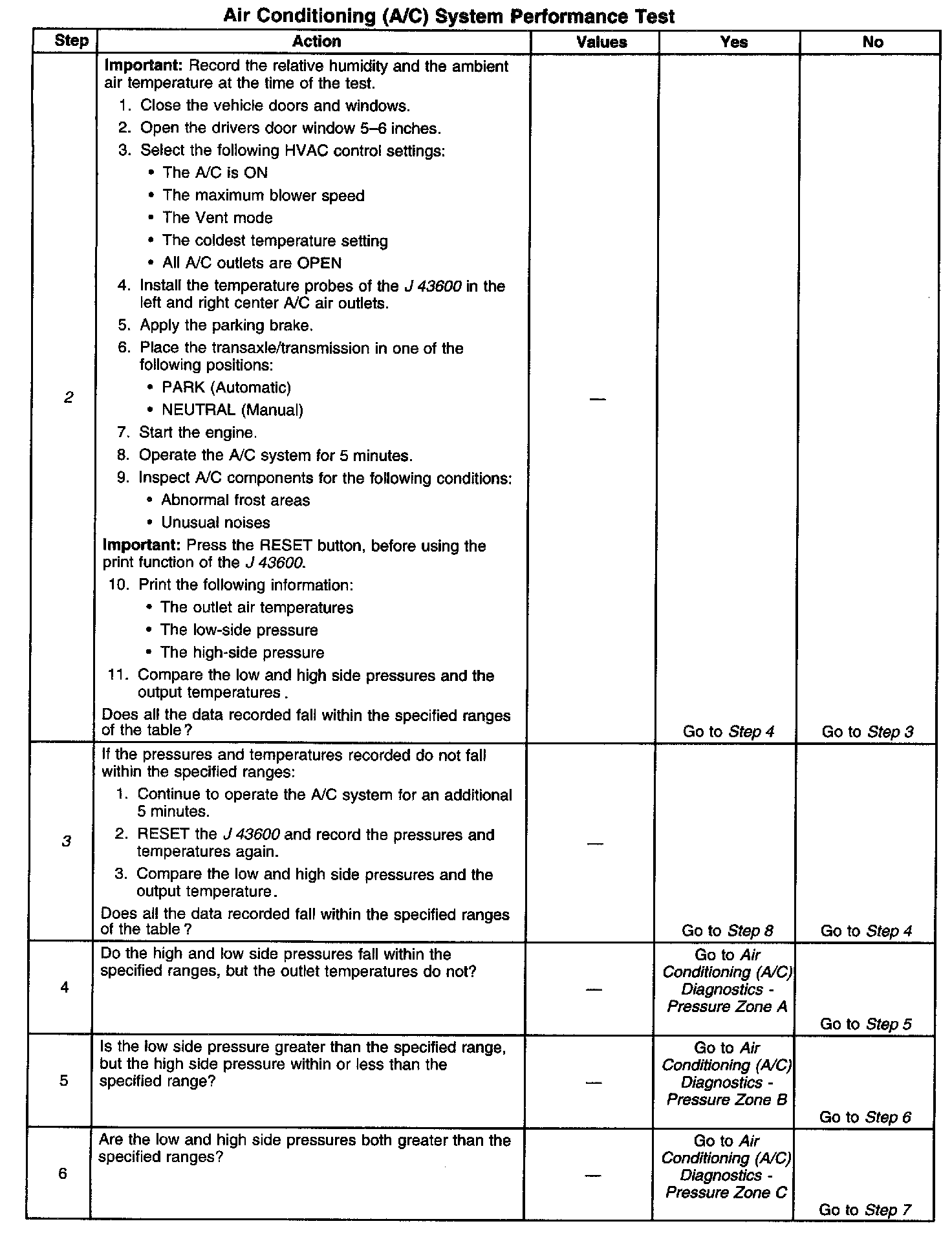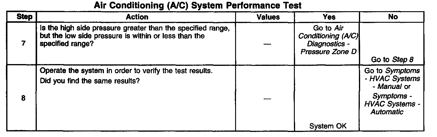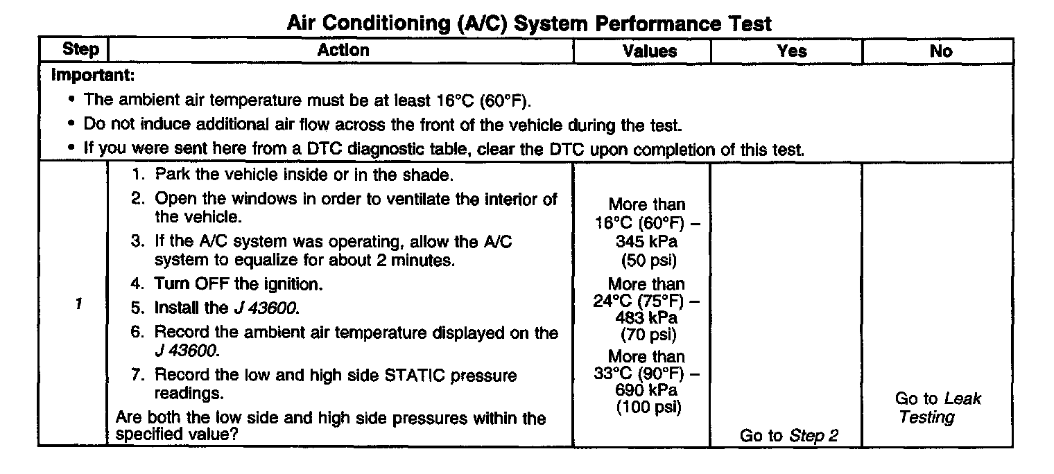 1. This step determines if the A/C system has at least the minimum refrigerant charge required to operate the system without damage.