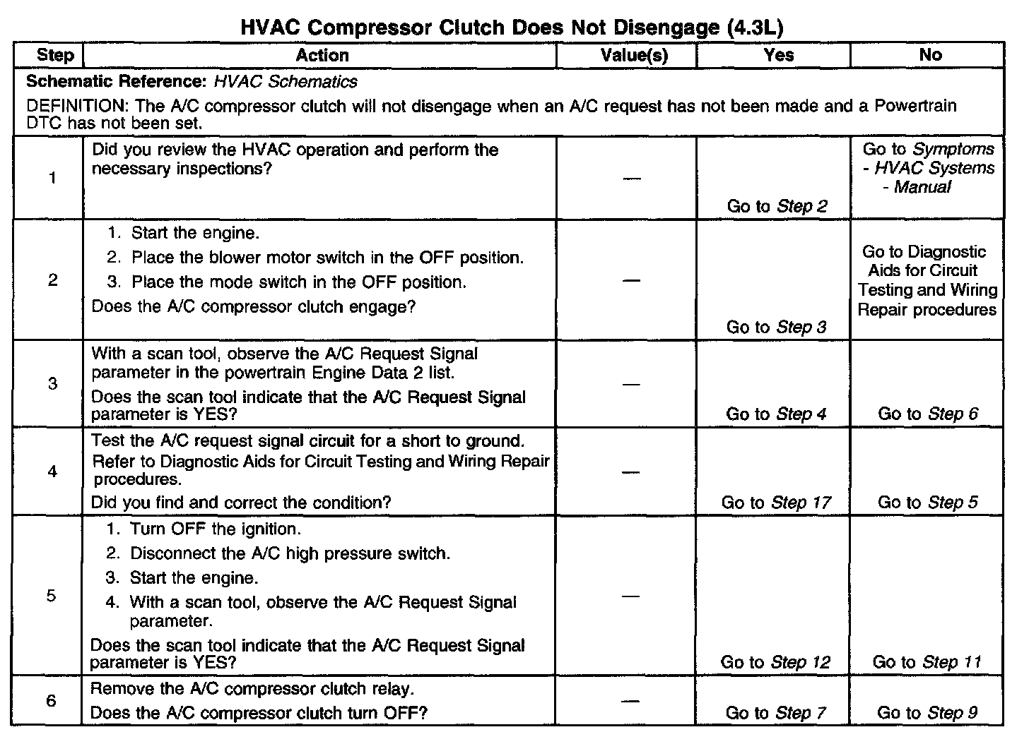 Symptoms - HVAC System - Manual