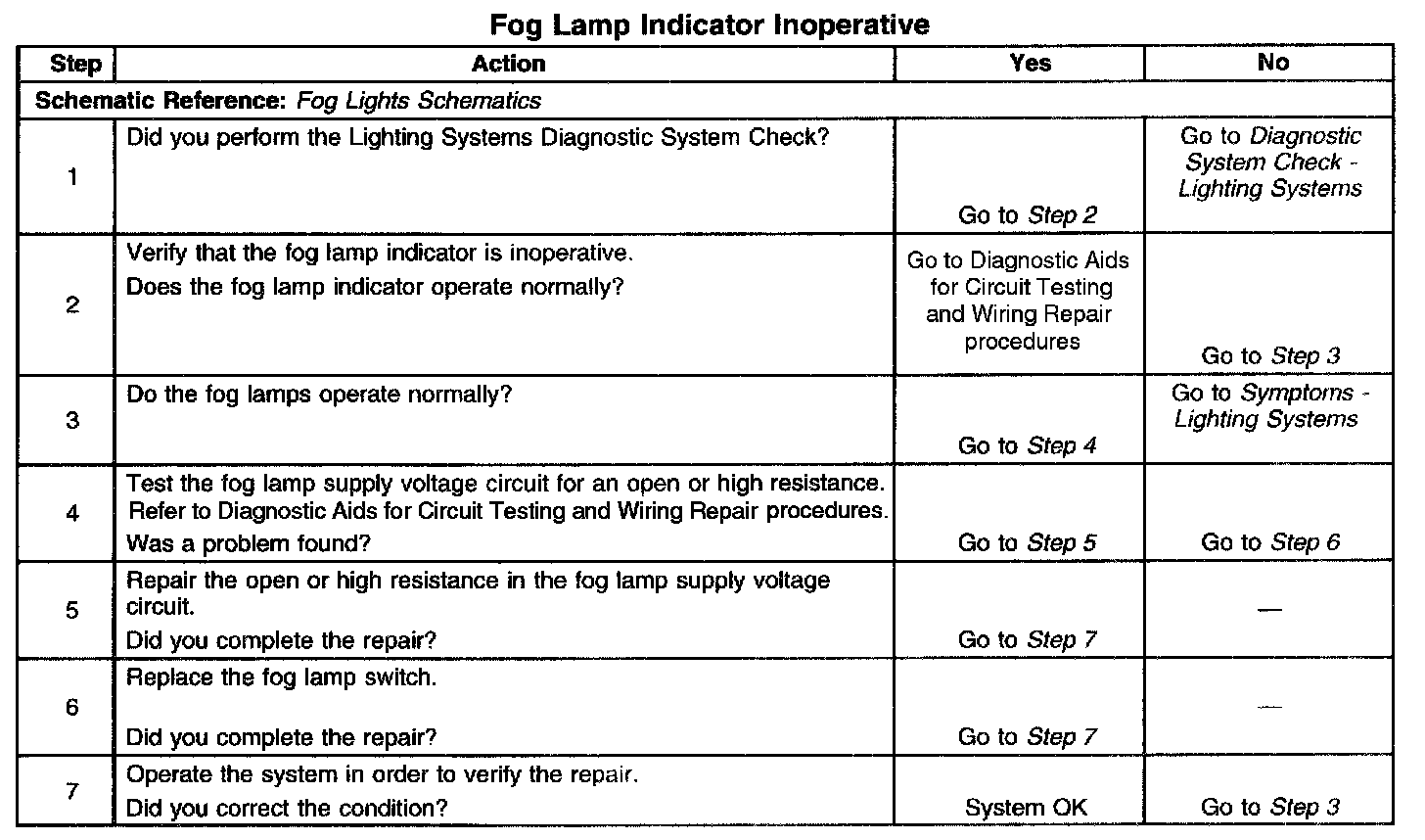 Fog Lamp Indicator Inoperative