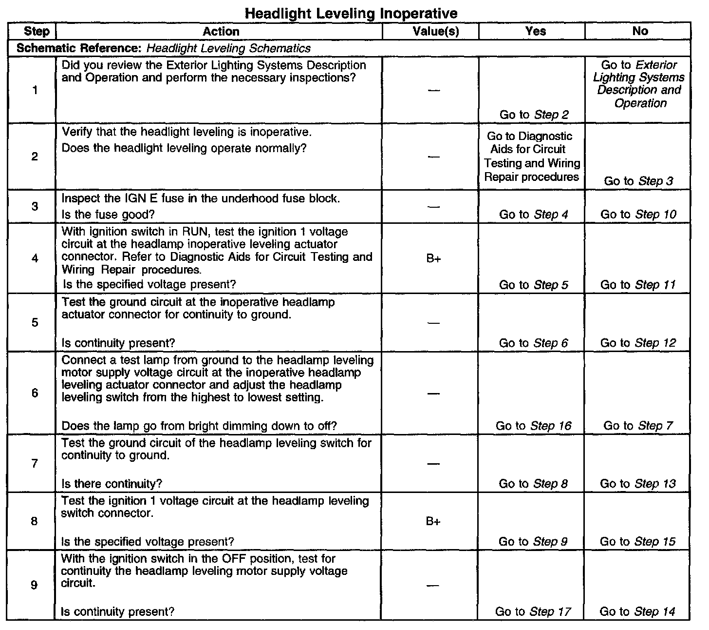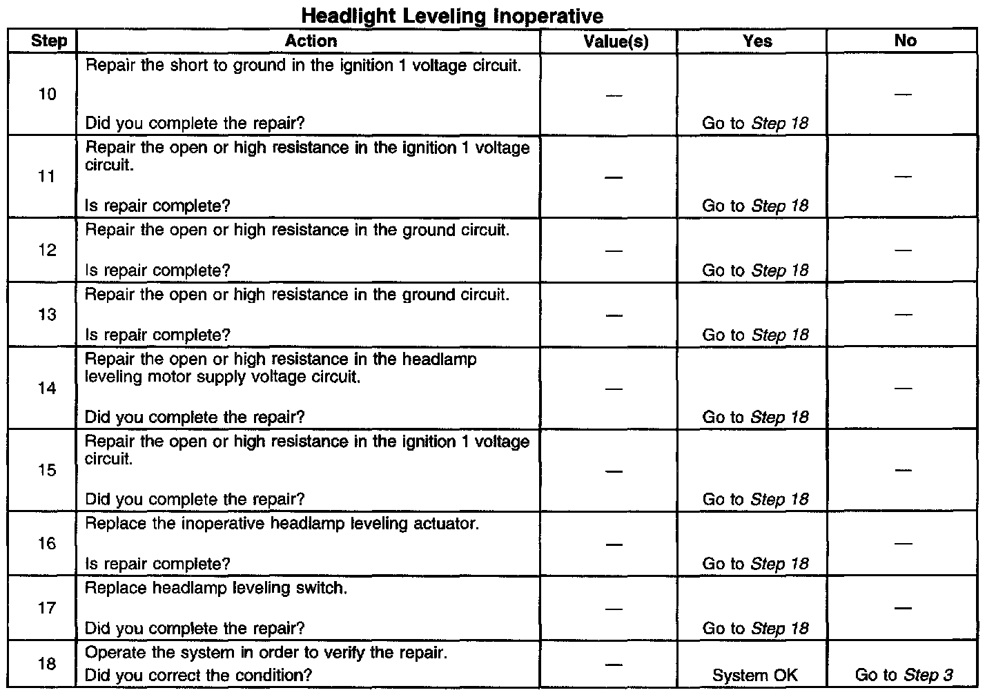 Headlight Leveling Inoperative