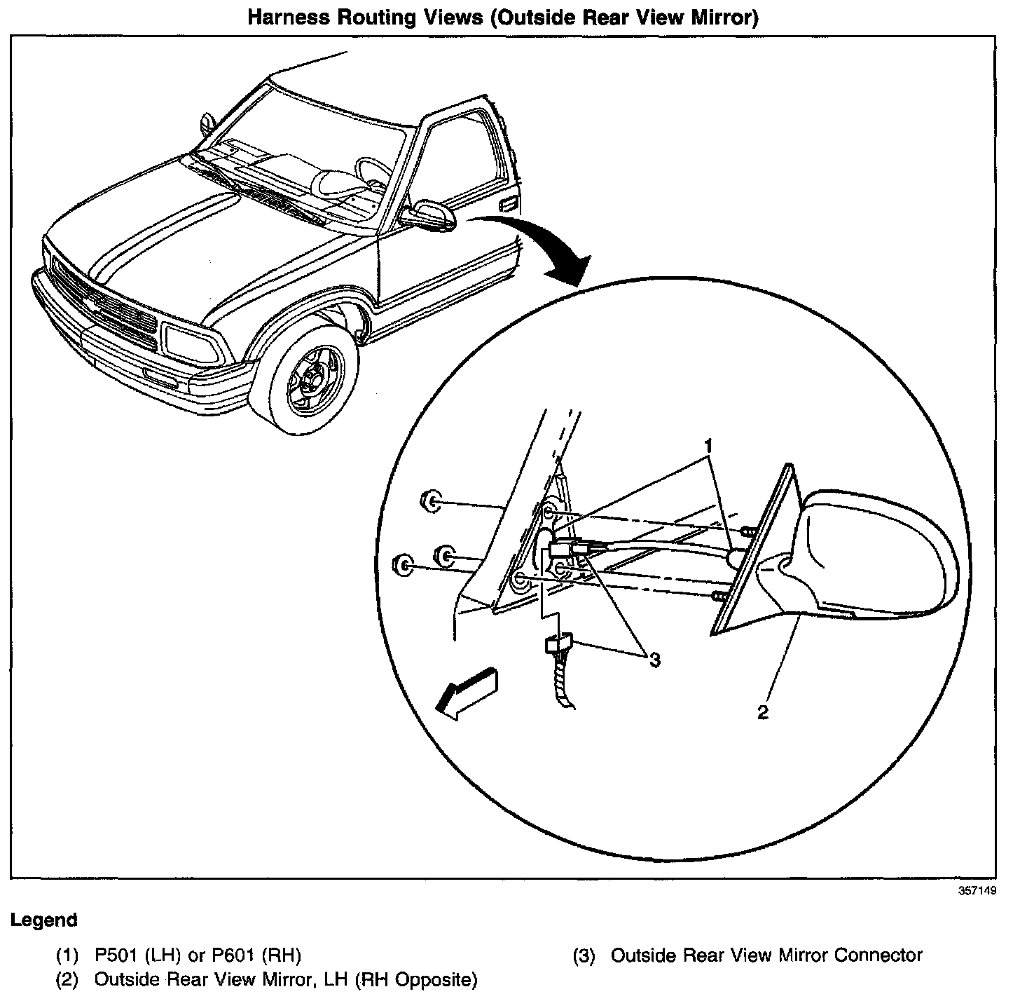 Harness Routing Views (Outside Rear View Mirror):