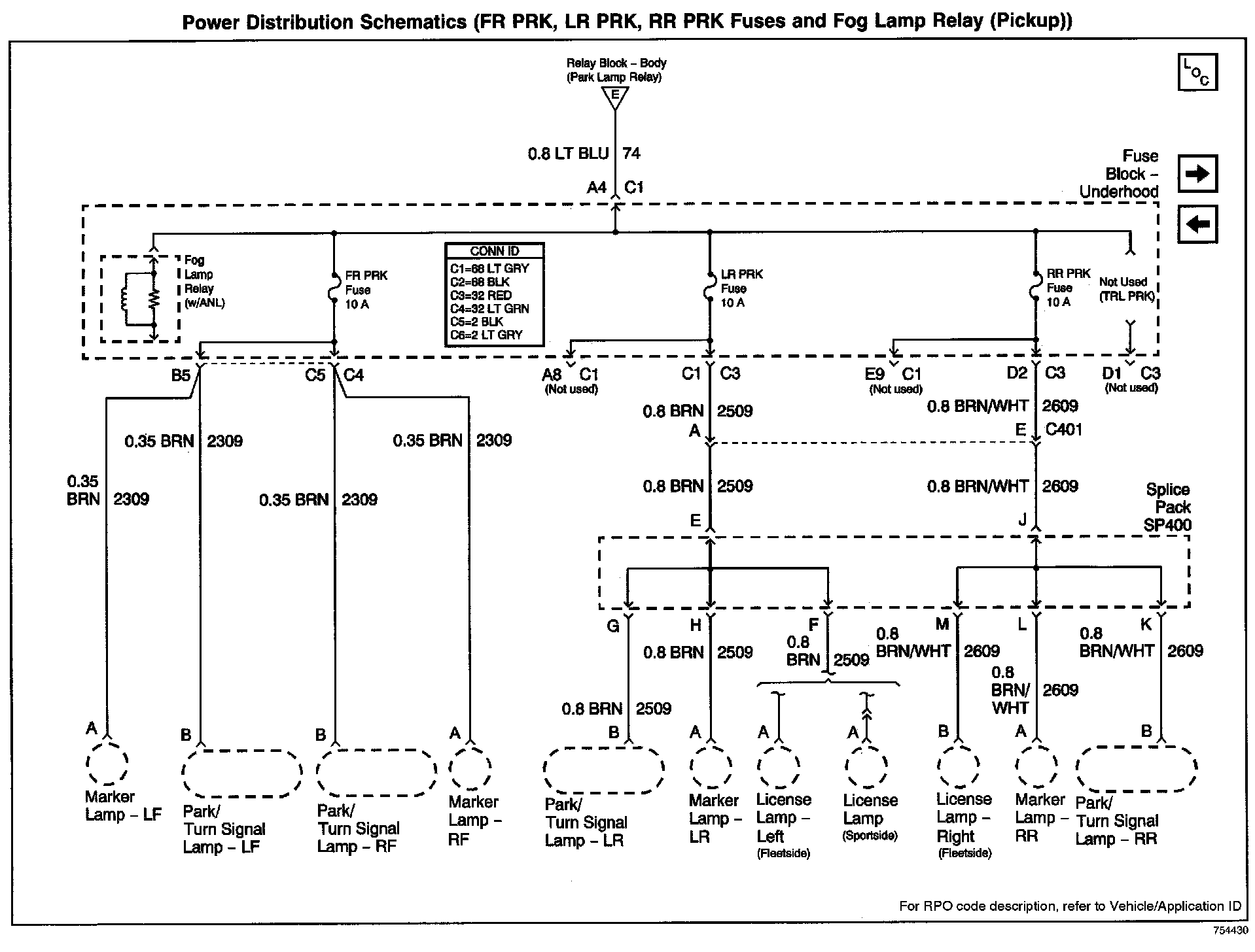 FR PRK, LR PRK, RR PRK Fuses And Fog Lamp Relay (Pickup):