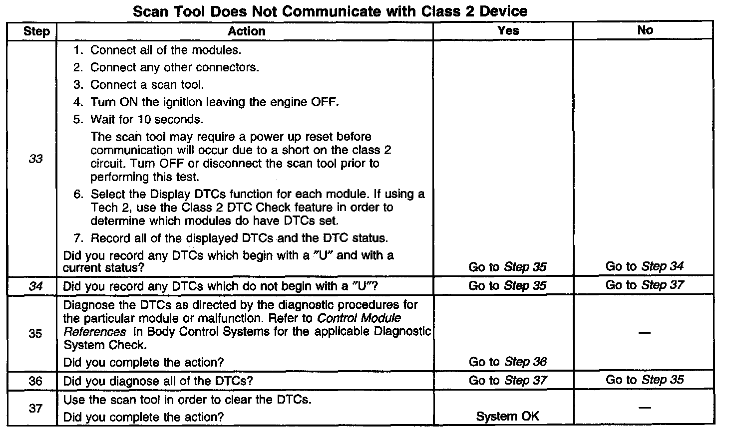 33. If there are no current DTCs that begin with a "U", the communication malfunction has been repaired.