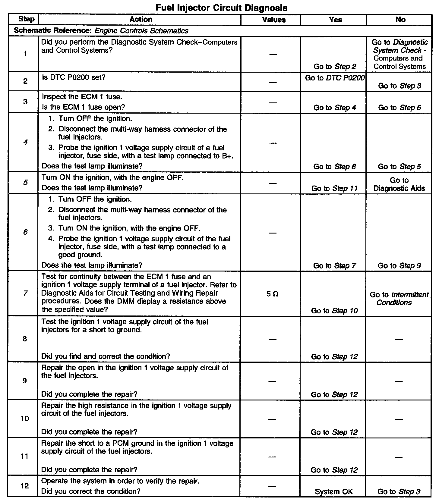 ^ Performing the Fuel Injector Coil Test may help isolate an intermittent condition. Refer to Fuel Injector Coil Test. Component Tests and General Diagnostics