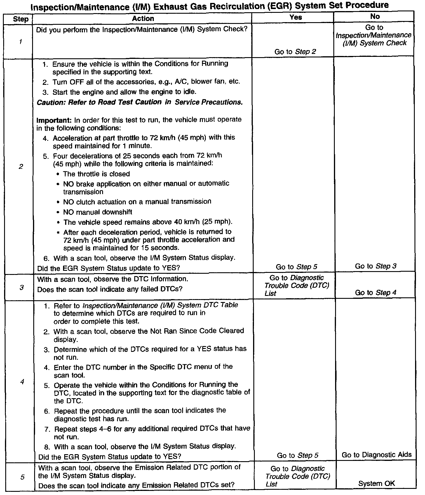 I/M EGR System Set Procedure