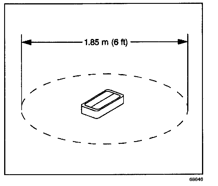6. Clear an area on the floor approximately 1.85 m (6 ft) in diameter for deployment of the inflator module. If possible, use a paved, outdoor location free of activity. Otherwise, use an area free of activity on the shop floor. Make sure you have sufficient ventilation.
