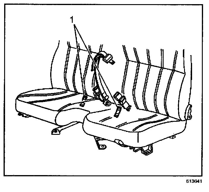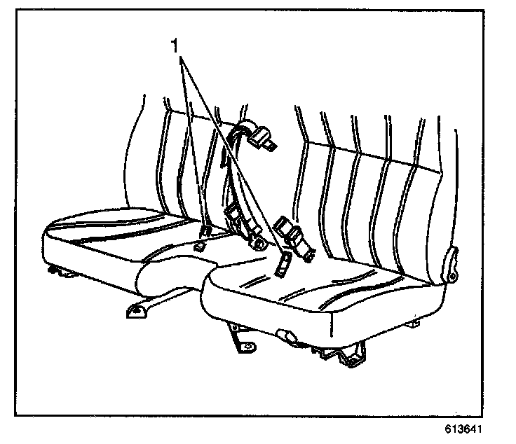 1. Install the tether anchor (1) to the seat frame with the mounting bolt.