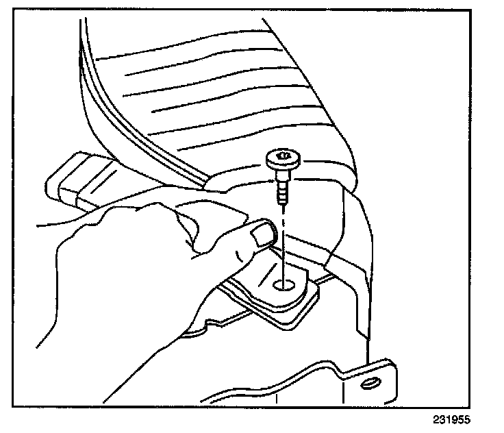 4. Remove the bolt that retains the passenger-side seat belt buckle or buckle and belt assembly to the seat.