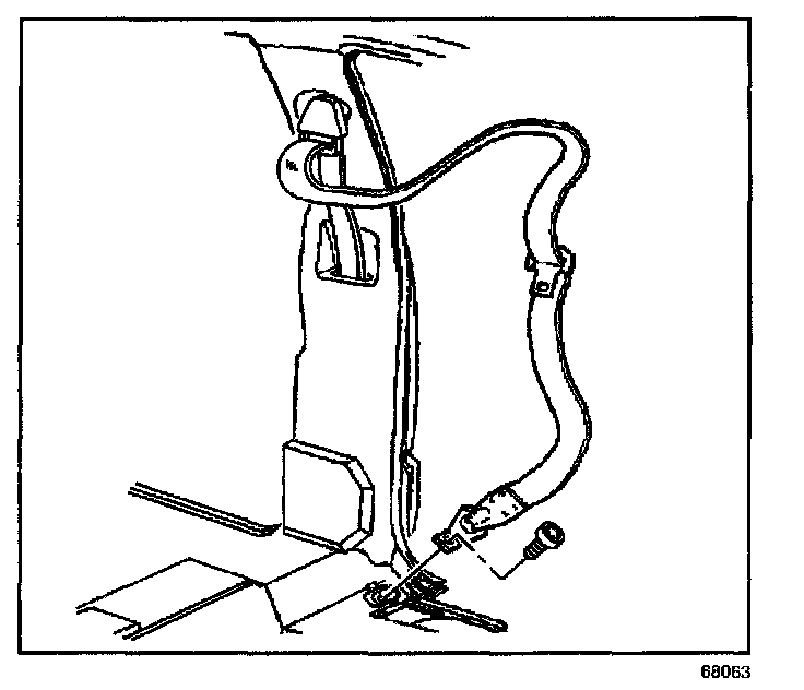 REMOVAL PROCEDURE1. Remove the bolt that retains the lower seat belt anchor plate to the vehicle.