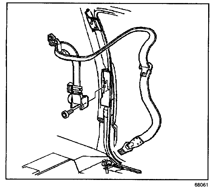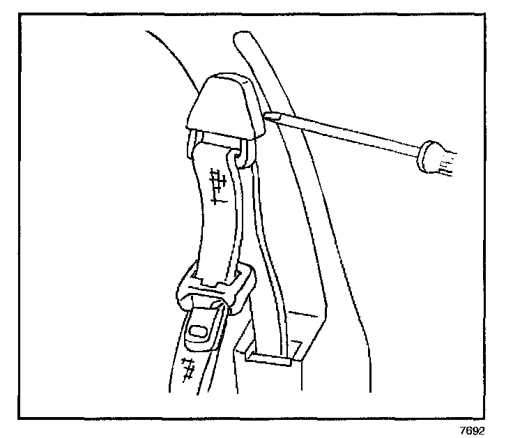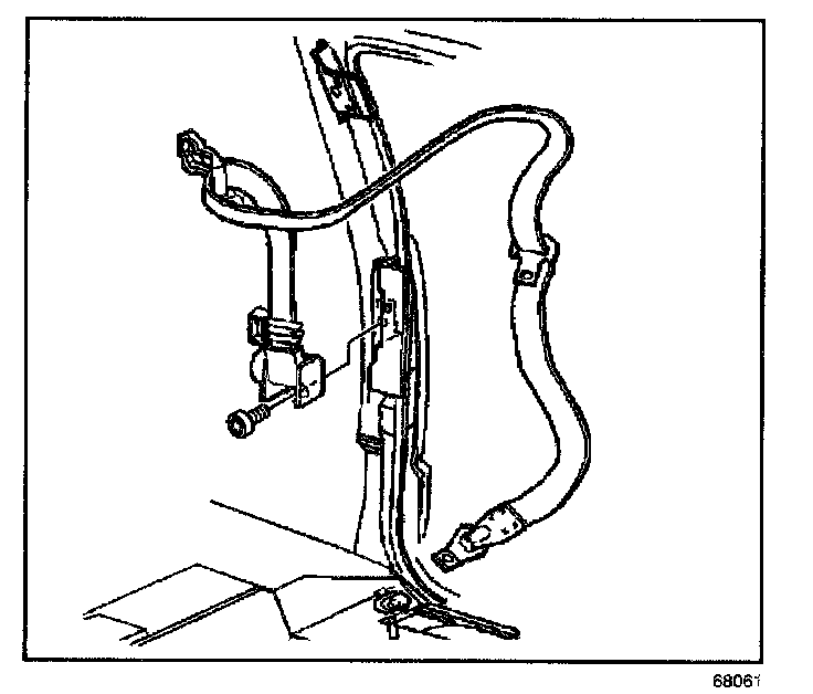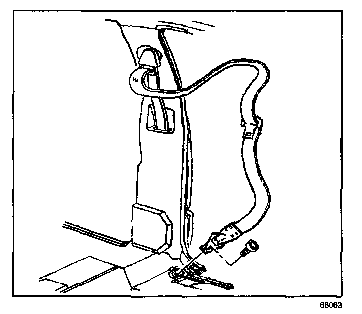 6. Remove the bolt that retains the seat belt retractor assembly to the vehicle.