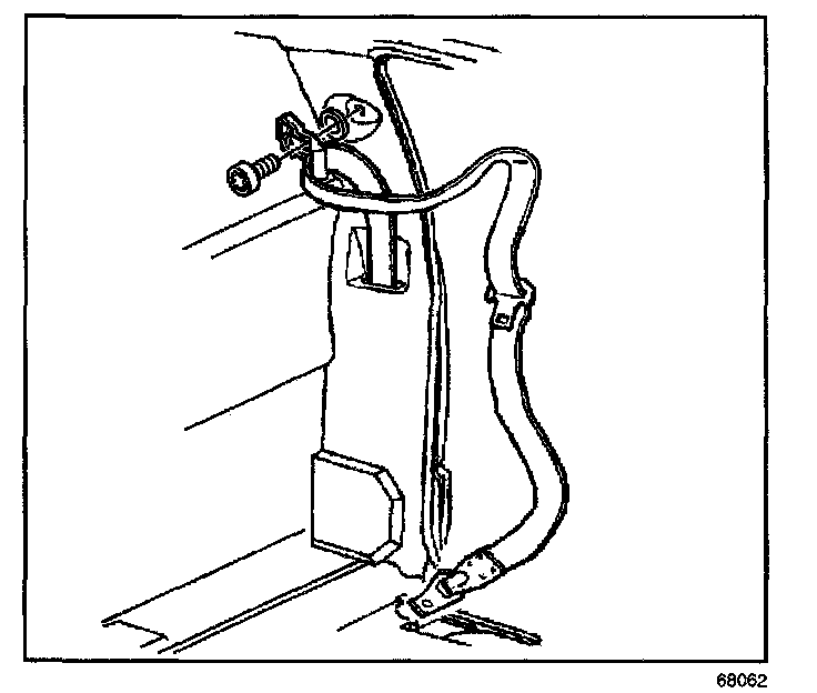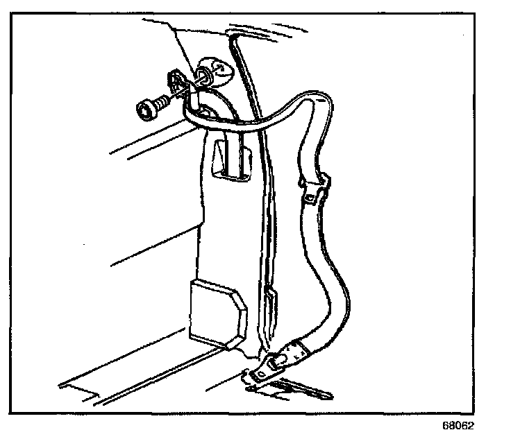 3. Remove the bolt that retains the upper seat belt anchor plate to the vehicle.