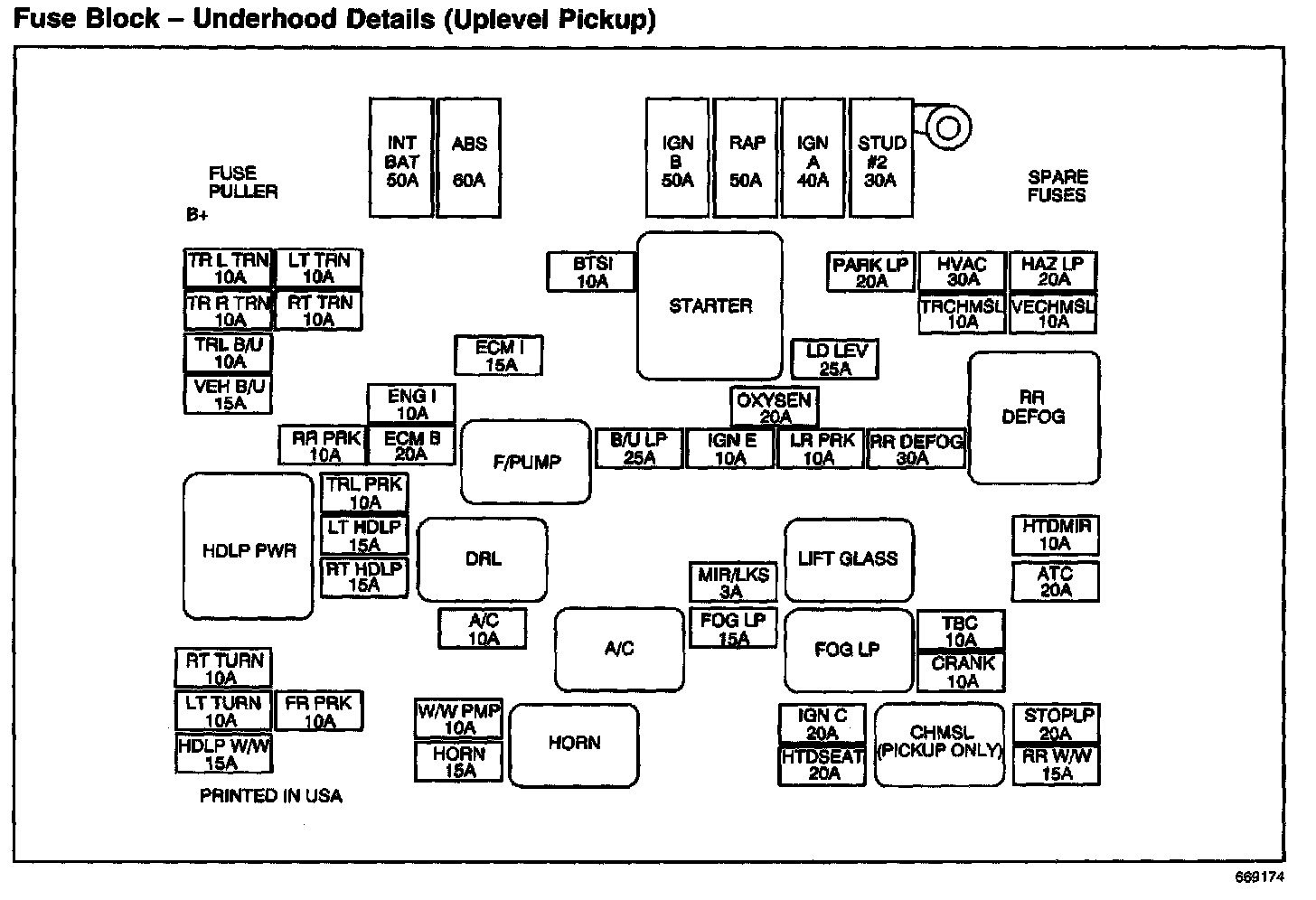 Fuse Block - Underhood Details (Uplevel Pickup) Part 2: