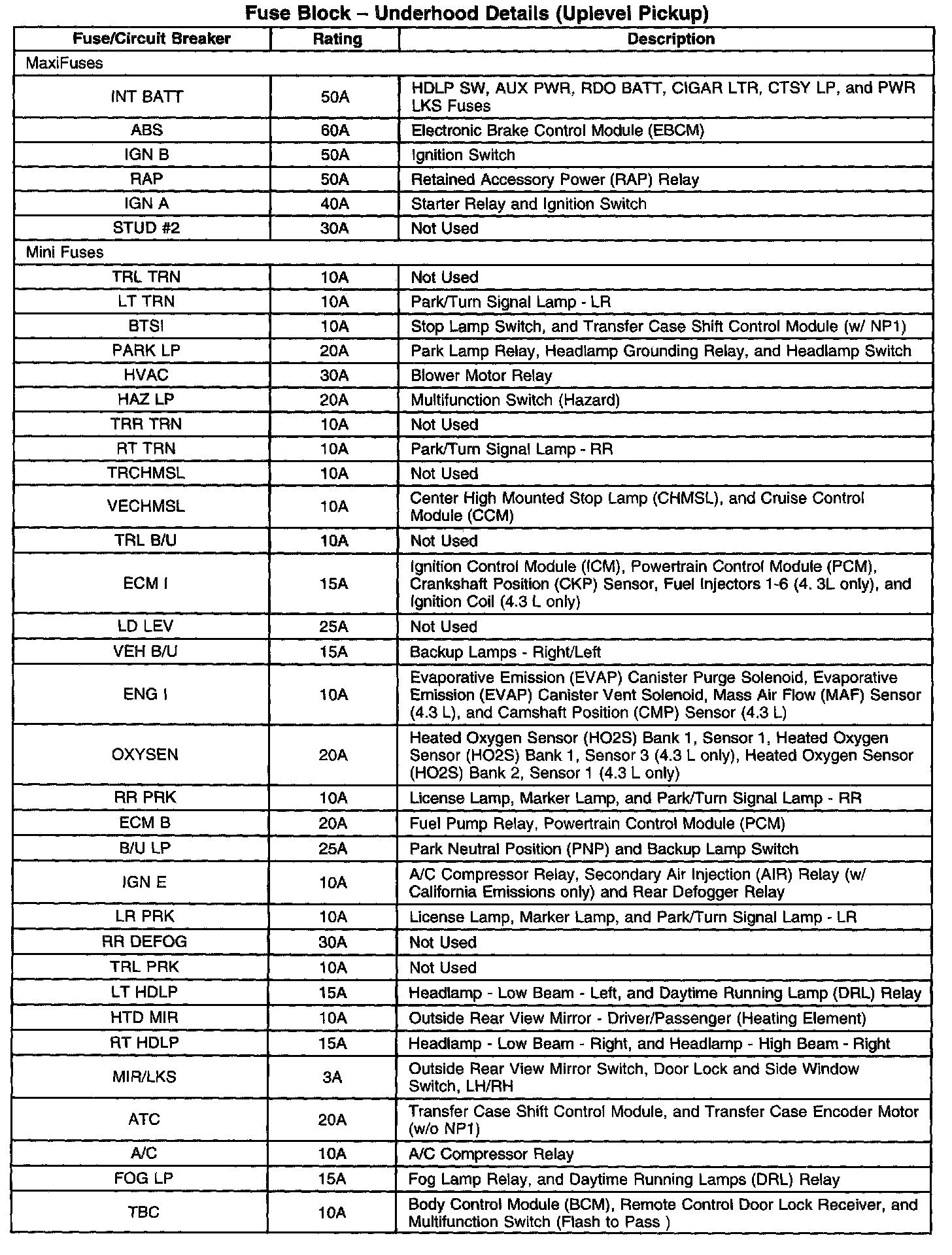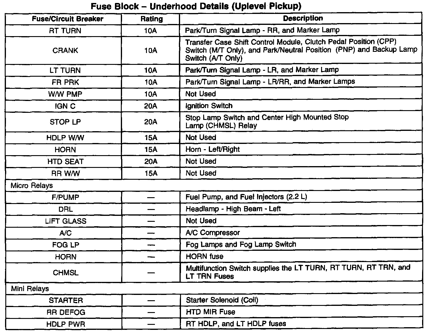 Fuse Block - Underhood Details (Uplevel Pickup):