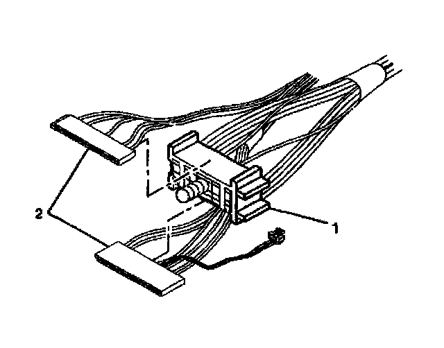 6. Slide the connectors (2) of the turn signal and multifunction switch out of the bulkhead connector (1).