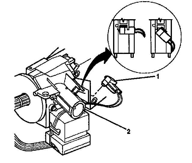8. Disconnect the electrical connector (2) from the electric park lock (1), for vehicles equipped with floor shifters.