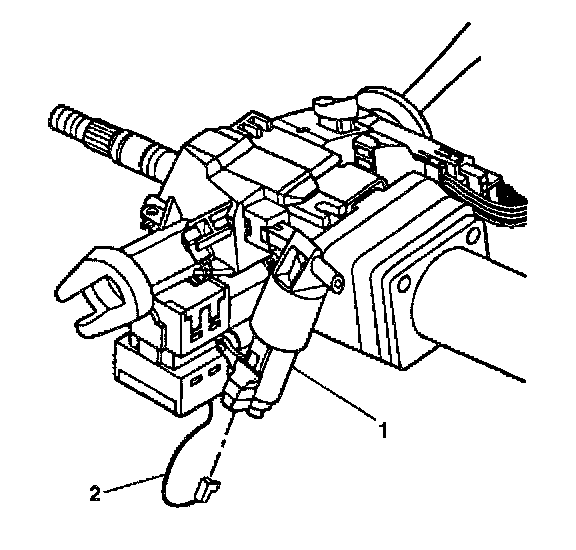 5. Remove the wire harness (1) from the wire harness strap (2) and the steering column.