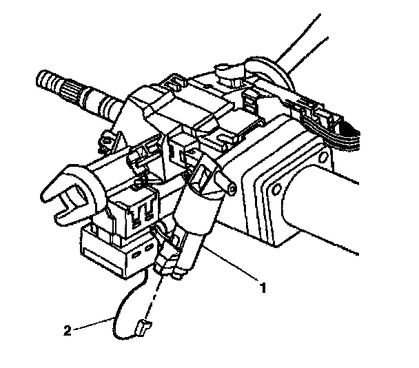 4. Slide the connectors (2) of the turn signal and multifunction switch into the bulkhead connector (1).