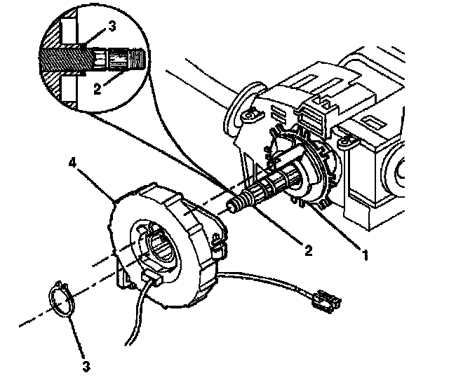 6. Slide the new inflatable restraint steering wheel module coil (4) onto the steering column shaft assembly (2).