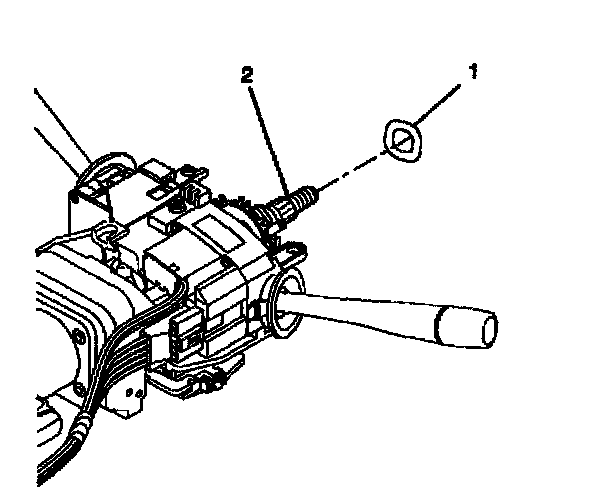 3. Install the wave washer (1) onto the steering column shaft assembly (2).
