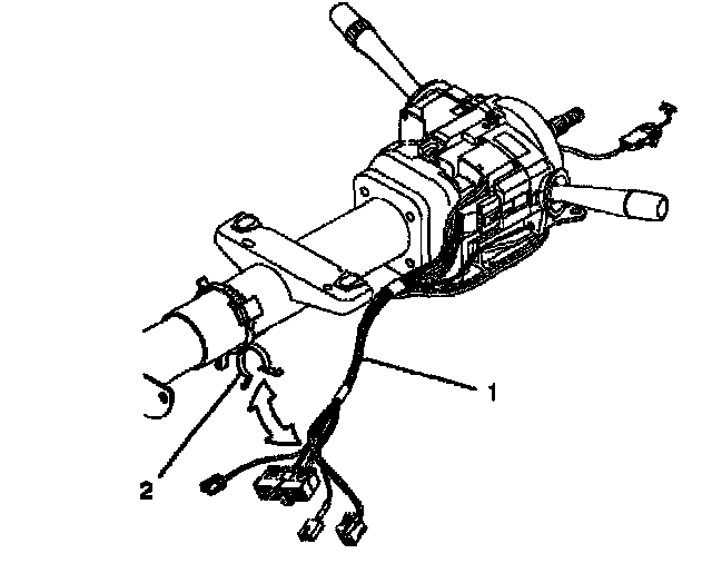 11. Install the wire harness assembly (1) into the wire harness strap (2).
