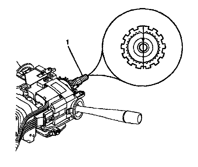 ^ The block tooth (1) of the steering shaft assembly is in the 12 o'clock position.