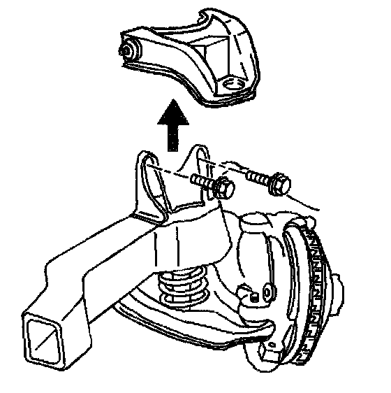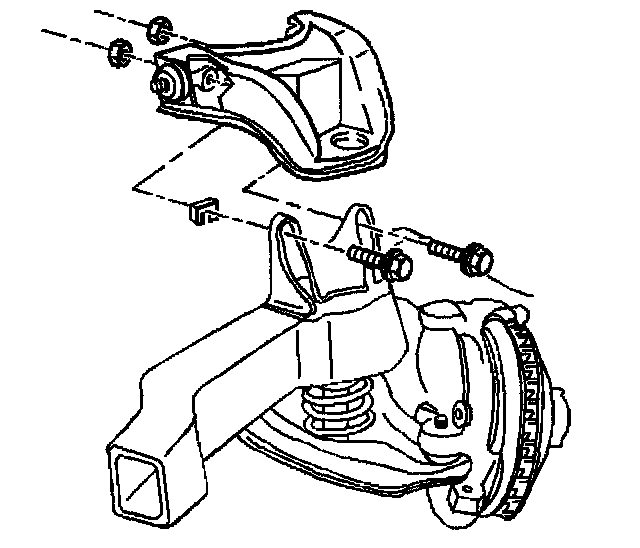 5. Remove the retaining bolts and nuts from the upper control arm. Note the location of any shims.