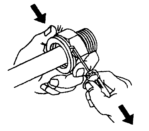 Important: Perform the following procedure when removing the retaining rings and cooler lines from the quick connect fittings located on the radiator and/or the transmission.