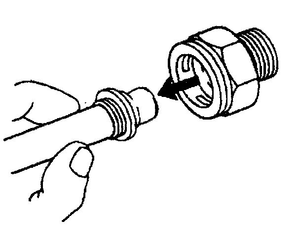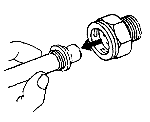11. Do not use the plastic cap on the cooler line in order to install the cooler line into the fitting.
