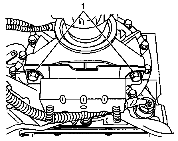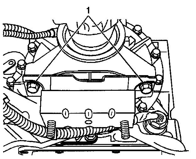 2. Install the bolts (1) that retain the transmission mount to the transmission (2WD), or transfer case adapter (4WD).
