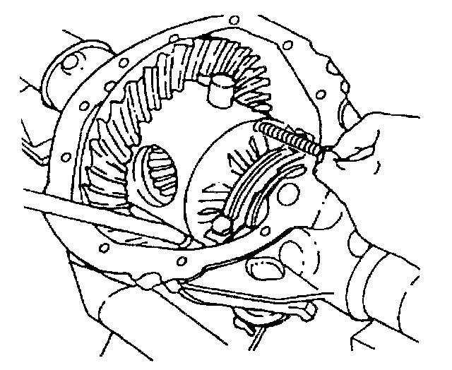 8. On axles with a locking differential, remove the shaft part way. Rotate the case until the pinion shaft touches the housing.