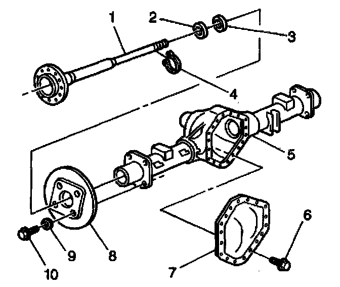 1. Install the axle shaft (1) into the rear axle housing (5).
