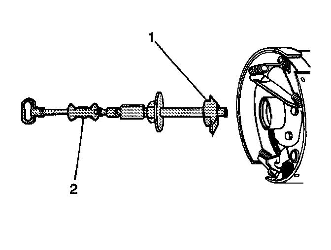 21. For axles with drum brakes, remove the axle shaft seal and the bearing from the axle housing using the J 22813-01 (7.6 inch axle) or the J 23689 (8.6 inch axle) (1) and the J 2619-01 (2).