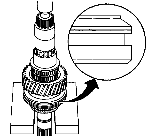 15.1. Manually align and engage the splines of the synchronizer hub with the main shaft splines.