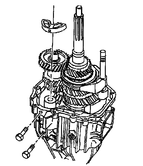 7. Install the 3 main shaft rear bearing retainer bolts. Apply threadlocker GM P/N 12345382 to the bolt threads.
