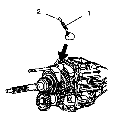 19.2. Install the spring (1) and the ball plunger (2) into the shift lever.