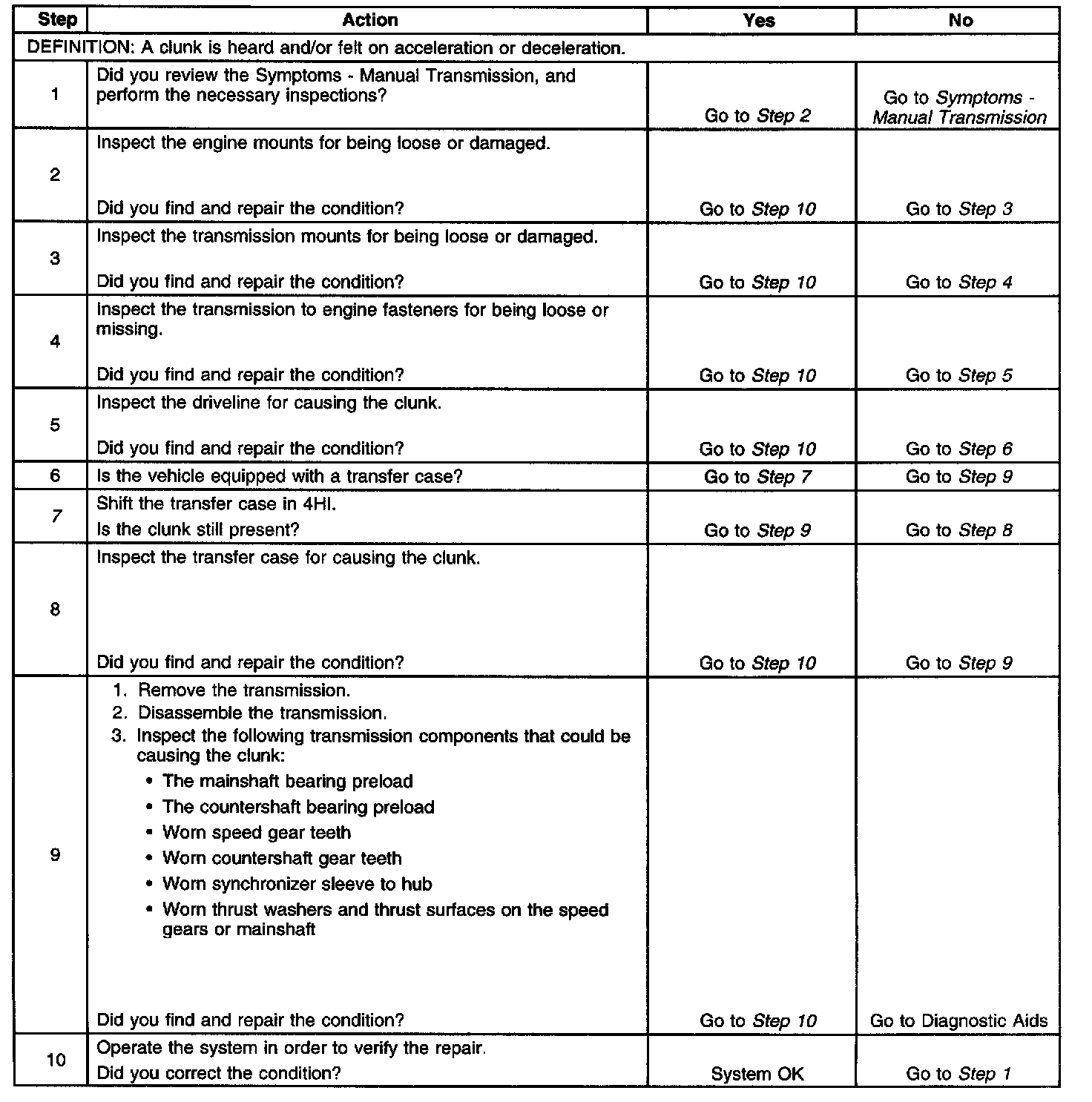 Clunk on Acceleration or DecelerationDiagnostic Aids